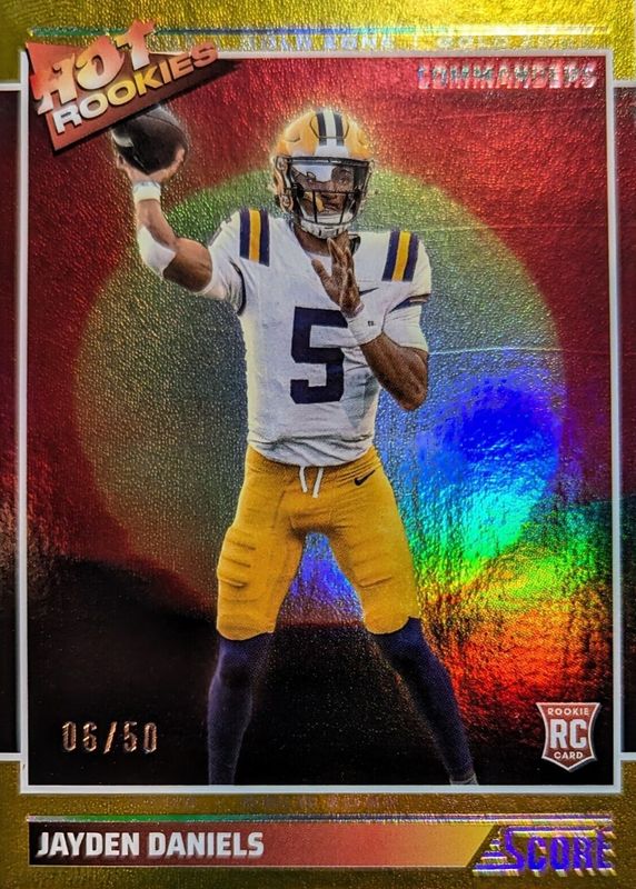2024 Panini Score Jayden Daniels Hot Rookies /50 Gold Zone RC Commanders