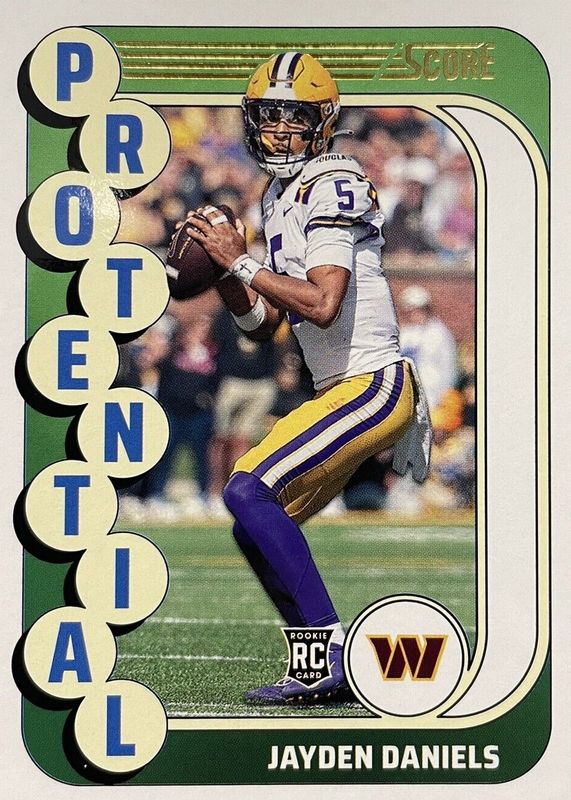 The Jayden Daniels 2024 Score #3 Protential - Gold Rookie card in Raw condition has not changed in price in the last 30 days and was last sold for $0.99 .