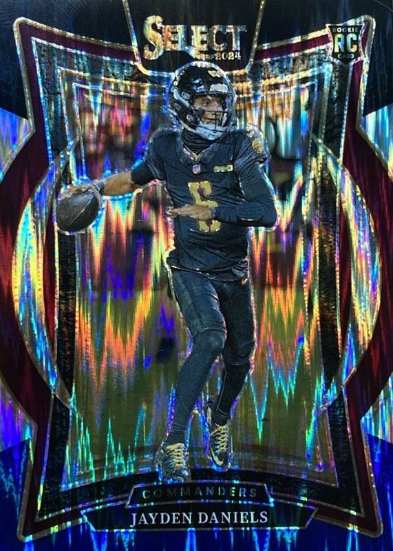 The Jayden Daniels 2024 Select #26 Concourse Black & Blue Shock Rookie card in Raw condition has moved down -$5.00 (-43.5%) in the last 30 days and was last sold for $6.50 .