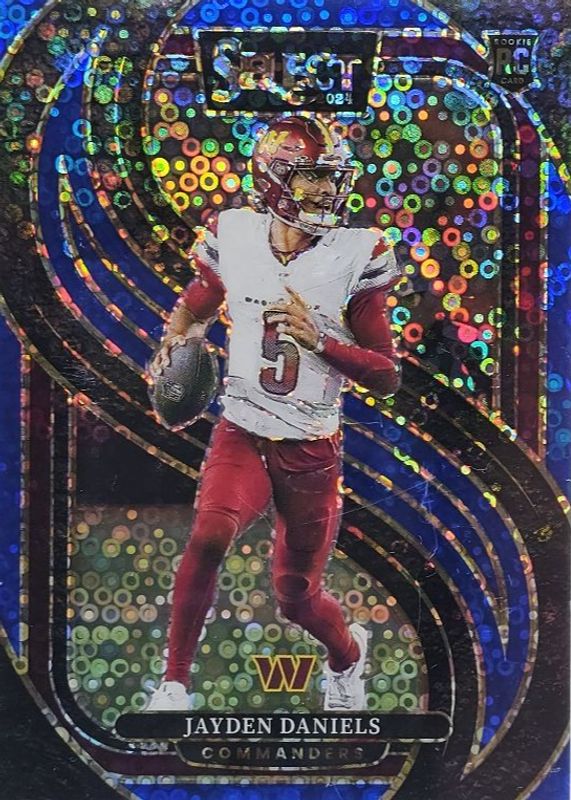 Best Prices Available For Sale of Jayden Daniels 2024 Select #112 Premier Level Blue Disco /25