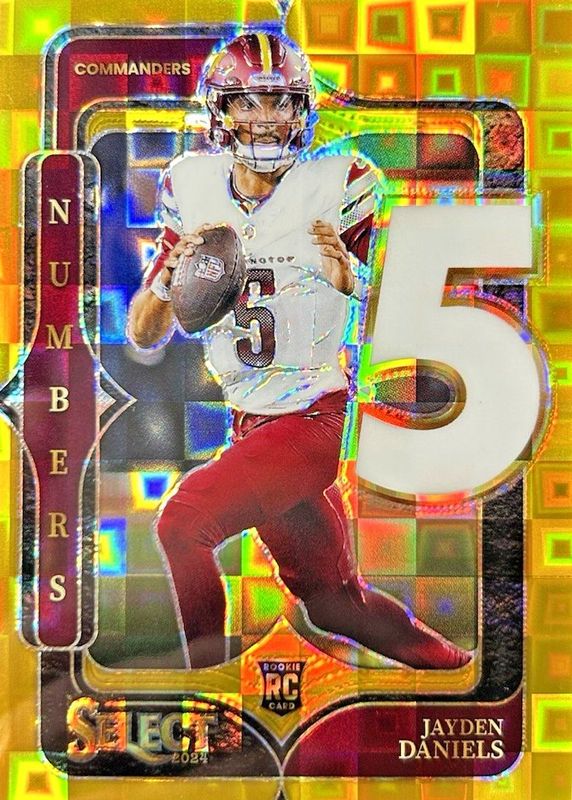 The Jayden Daniels 2024 Select #23 Select Numbers - Gold /10 Rookie card in Raw condition has not changed in price in the last 30 days and was last sold for $900.00 .