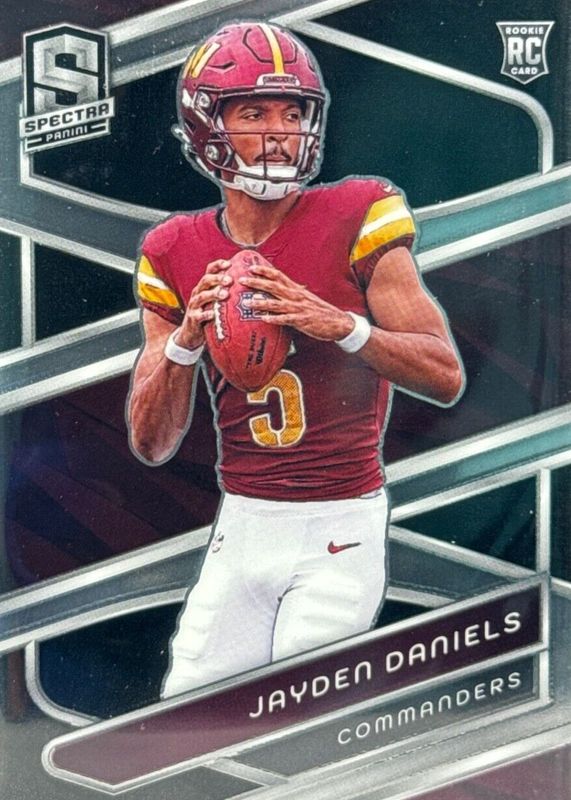 The Jayden Daniels 2024 Spectra #2 Base Rookie card in Raw condition has not changed in price in the last 30 days and was last sold for $24.99 .