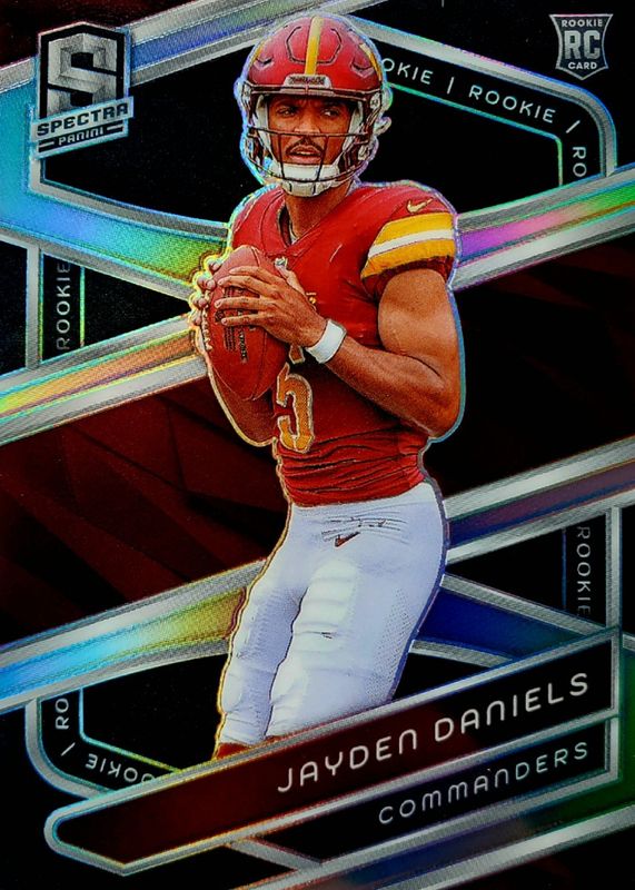 The Jayden Daniels 2024 Spectra #115 Silver Rookie card in Raw condition has not changed in price in the last 30 days and was last sold for $27.95 .