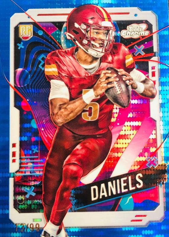 Best Prices Available For Sale of Jayden Daniels 2024 Topps Chrome Cosmic #196 Blue Moon Refractor /99