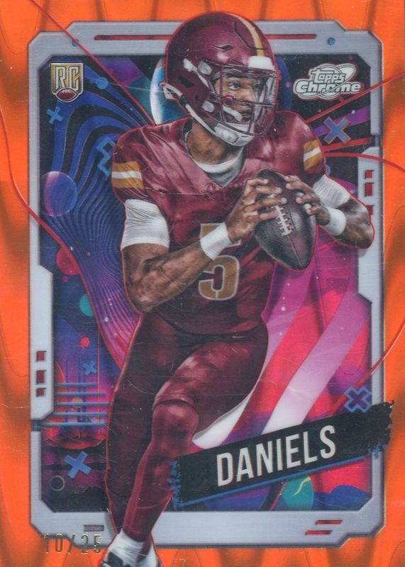 Best Prices Available For Sale of Jayden Daniels 2024 Topps Chrome Cosmic #196 Orange Galactic Refractor /25