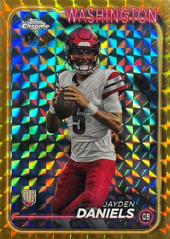 JAYDEN DANIELS 2024 TOPPS CHROME #201 ROOKIE GEOMETRIC GOLD REFRACTOR 01/50 RC