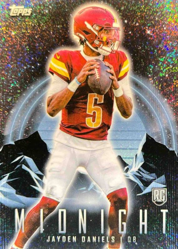This card is 1 of 98 Jayden Daniels' card variations in the 2024 Topps Midnight set being tracked by Sports Card Investor, including Base, Zodiac, Morning /149, Twilight /99, and Dusk /75.