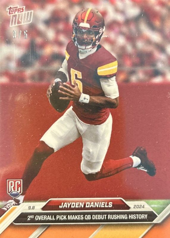 2024 Topps Now Jayden Daniels QB Debut Rushing Rookie Orange /5 #3 SSP RC