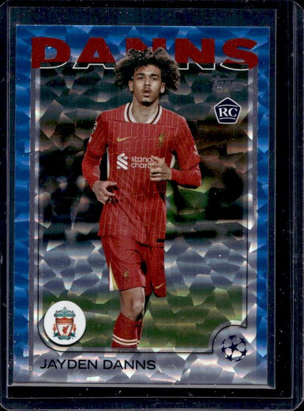 The Jayden Danns 2024 Topps UEFA Club Competitions #193 Icy Blue /75 card is 1 of 92 Jayden Danns' card variations in the 2024 Topps UEFA Club Competitions set being tracked by Sports Card Investor, including #193 Base, #193b Base, #193 Black Flowfractor, #193b Black Flowfractor, and #193b Golden Flowfractor.