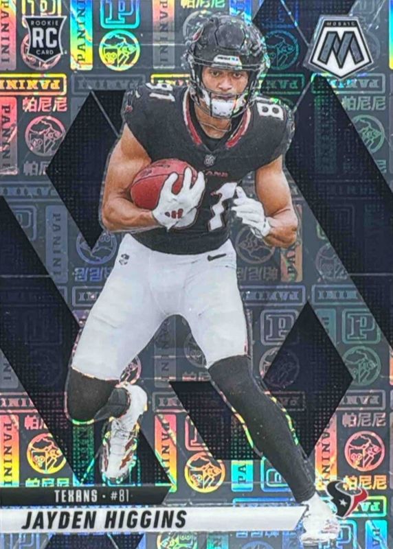This card is 1 of 116 Jayden Higgins' card variations in the 2025 Mosaic set being tracked by Sports Card Investor, including Base, Rookie Variation, Blue Scope, Choice Red & Green, and Green.