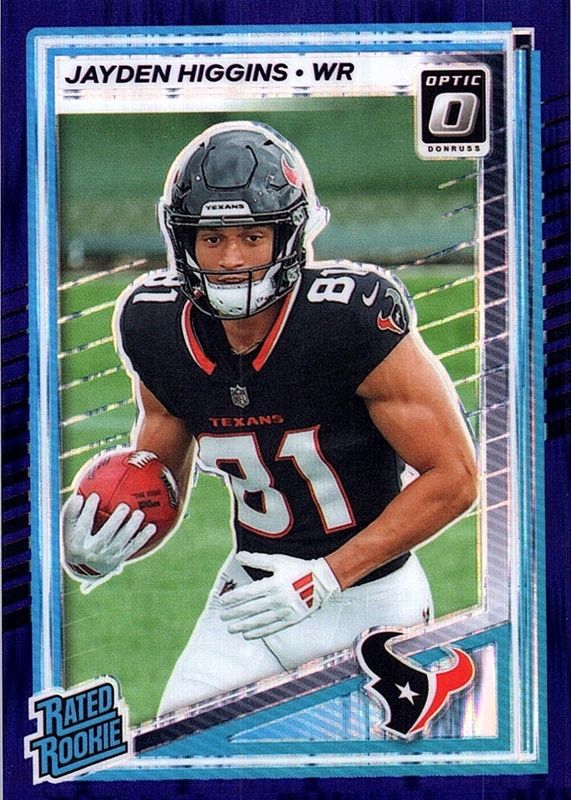 The Jayden Higgins 2025 Optic #225 Blue Scope Rookie card in Raw condition has moved up $0.51 (+51.5%) in the last 30 days and was last sold for $1.50 .