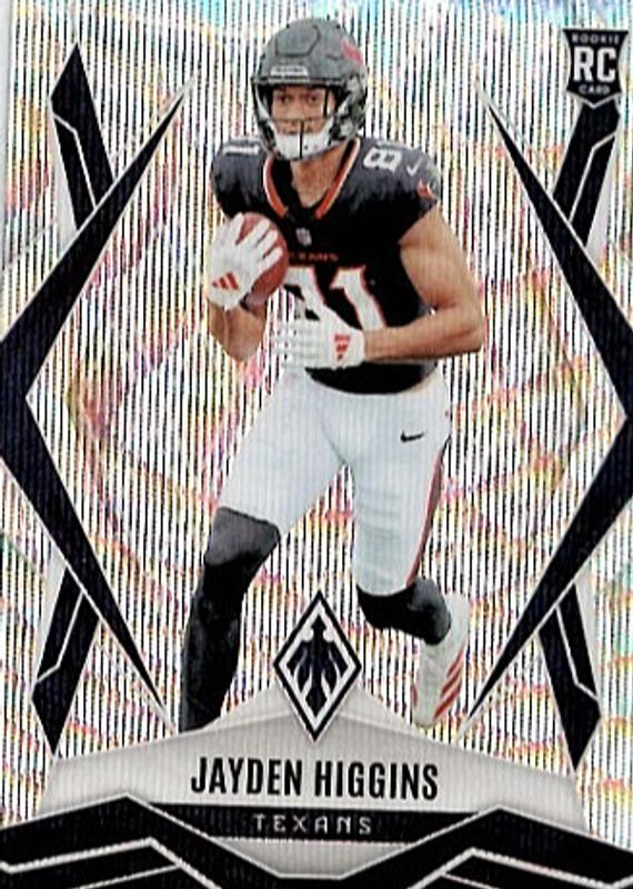 This card is 1 of 77 Jayden Higgins' card variations in the 2025 Phoenix set being tracked by Sports Card Investor, including Base, Silver, Red Hyper /399, Red Winter /399, and Light Blue Pyramids /385.