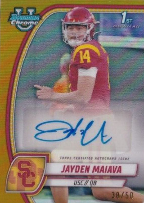 2024 Bowman Chrome University U Jayden Maiava Auto Gold Refractor #/50 USC