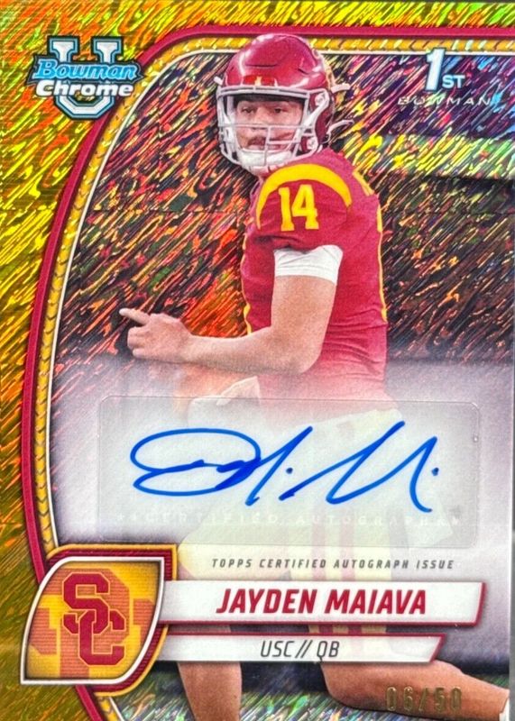 Jayden Maiava 2024 Bowman Chrome University PA-JMA 1st Shimmer Gold Auto USC /50
