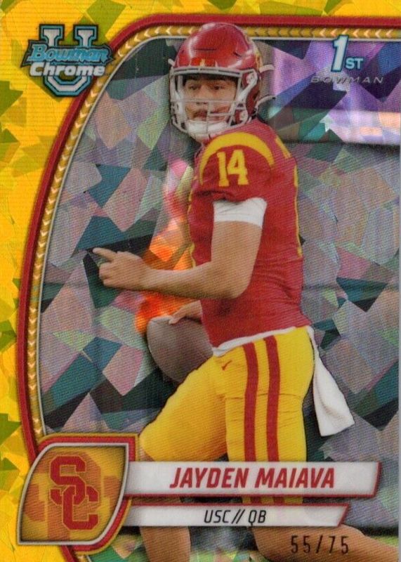 2024 Bowman Chrome U Sapphire Jayden Maiava Yellow Refractor RC Rookie #d 31/75