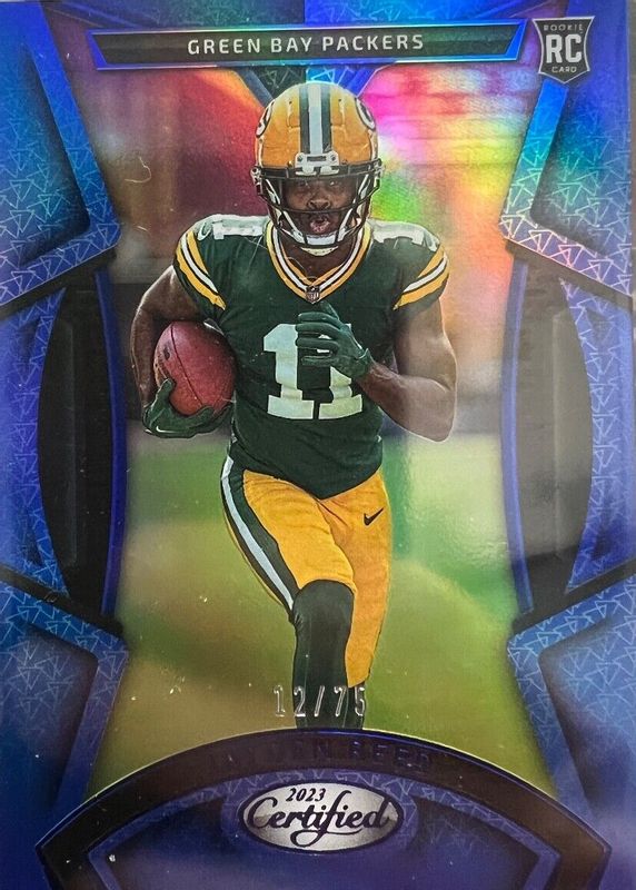 2023 Certified Jayden Reed RC Blue Mirror Rookie #5/75 Packers
