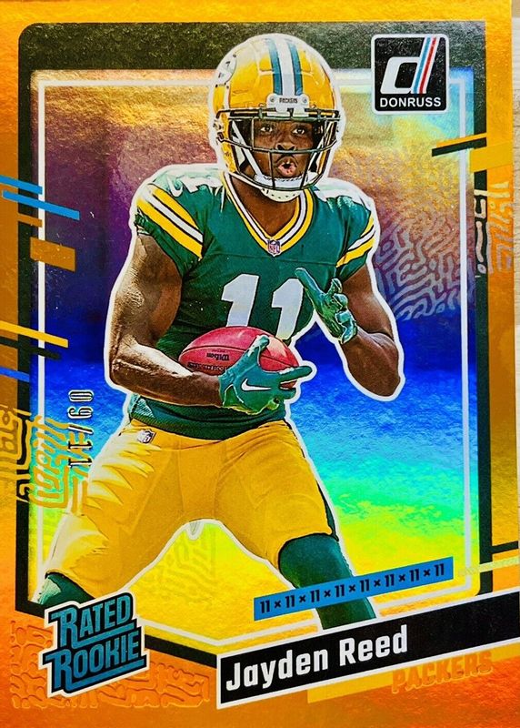 This card is 1 of 57 Jayden Reed's card variations in the 2023 Donruss set being tracked by Sports Card Investor, including Base, Aqueous Test, Canvas, No Name, and Optic Preview - Blue Scope.