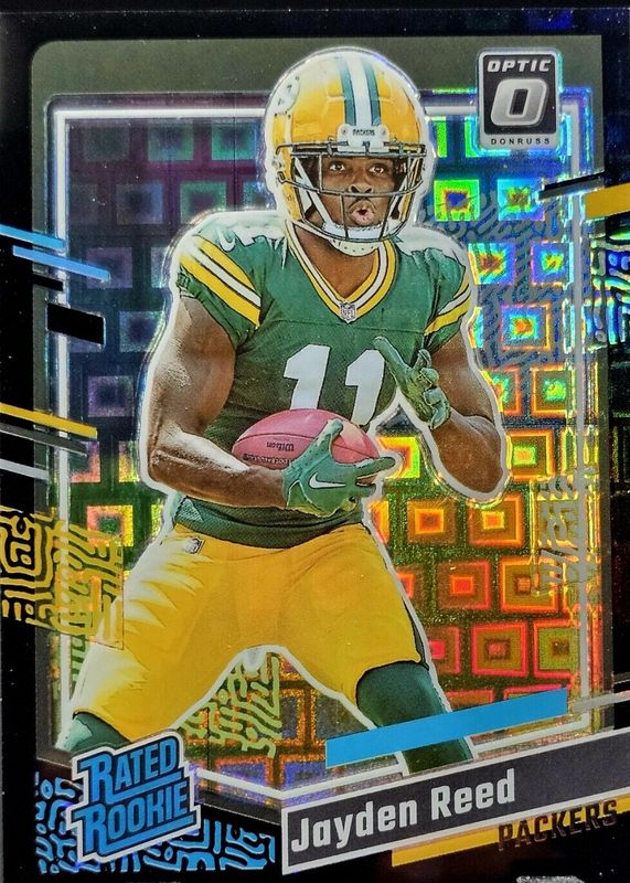 The Jayden Reed 2023 Donruss #334 Optic Preview - Black Pandora /25 Rookie card in Raw condition has not changed in price in the last 30 days and was last sold for $121.00 .