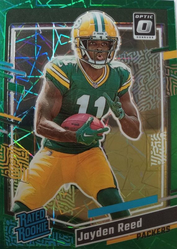 2023 Donruss Optic Preview Green Velocity Rated Rookie #334 Jayden Reed Packers