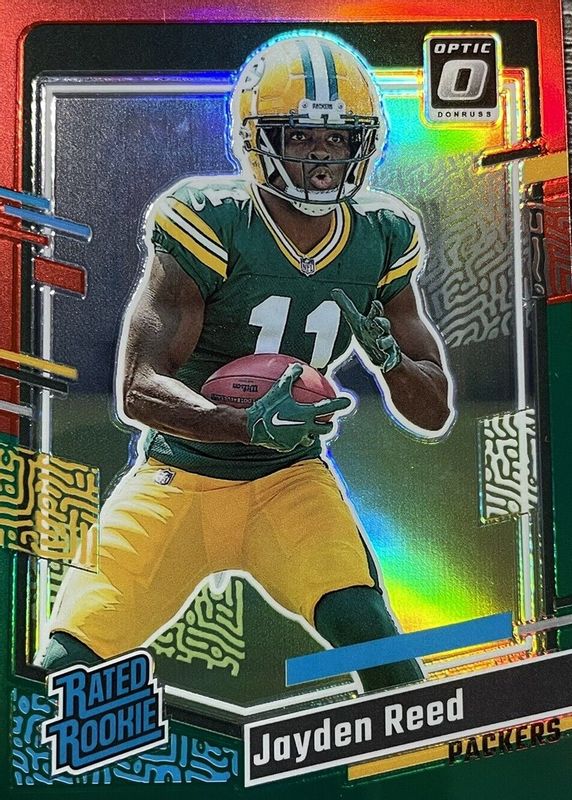 JAYDEN REED 2023 DONRUSS OPTIC PREVIEW RATED ROOKIE RED GREEN RC - PACKERS