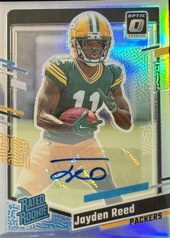 2023 donruss jayden reed auto Silver Prizm Optic Rated Rookie Preview Packers RC