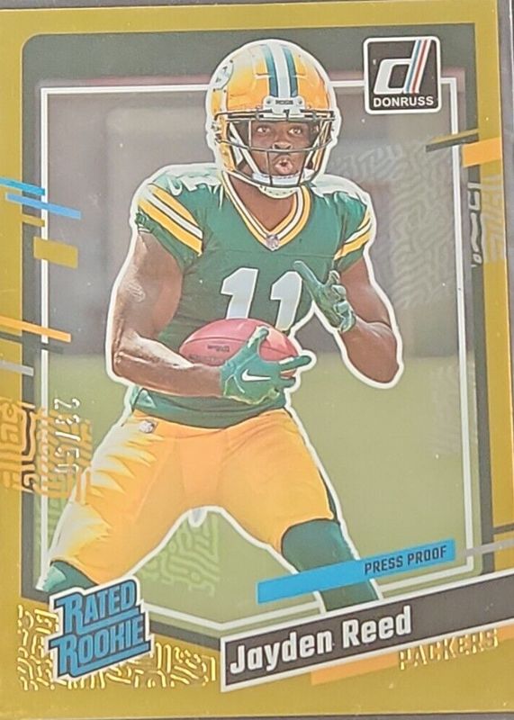 2023 Panini Donruss Rated Rookie Jayden Reed Gold Press Proof 3/50 Packers