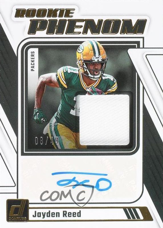The Jayden Reed 2023 Donruss #RPJA-JREE Rookie Phenom Jersey Autographs - Prime /49 card in Raw condition has not changed in price in the last 30 days and was last sold for $29.00 .