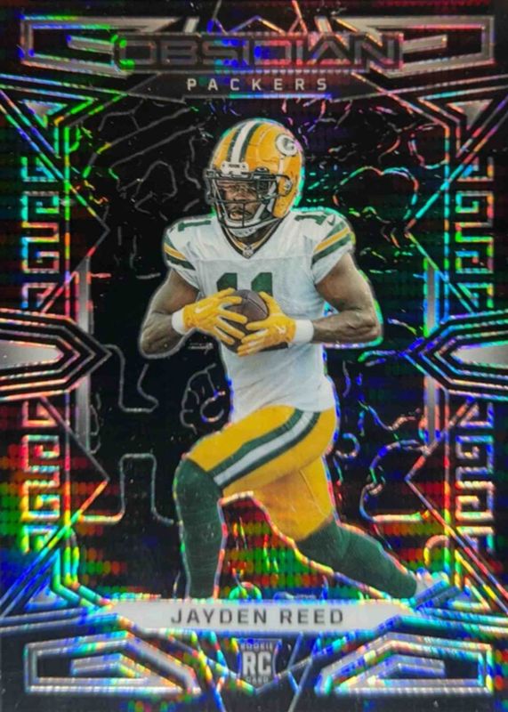 This card is 1 of 24 Jayden Reed's card variations in the 2023 Obsidian set being tracked by Sports Card Investor, including Base, Electric Etch Red Flood /90, Electric Etch Purple /75, Electric Etch Contra /(SSP), and Electric Etch Orange /49.