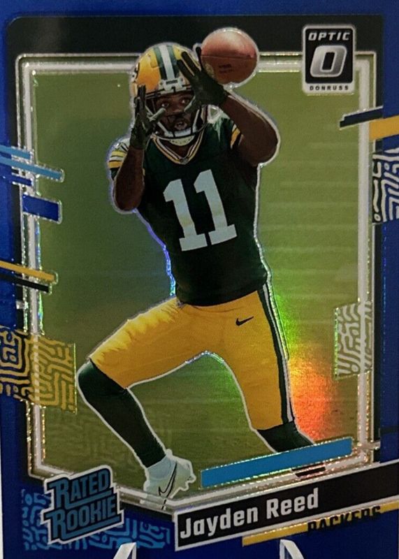 The Jayden Reed 2023 Optic #239 Blue /199 Rookie card in Raw condition has not changed in price in the last 30 days and was last sold for $3.25 .