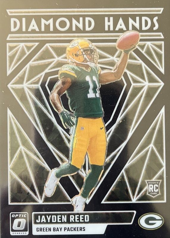 2023 Donruss Optic Jayden Reed RC Diamond Hands Black Pandora 8/25 Packers GN1