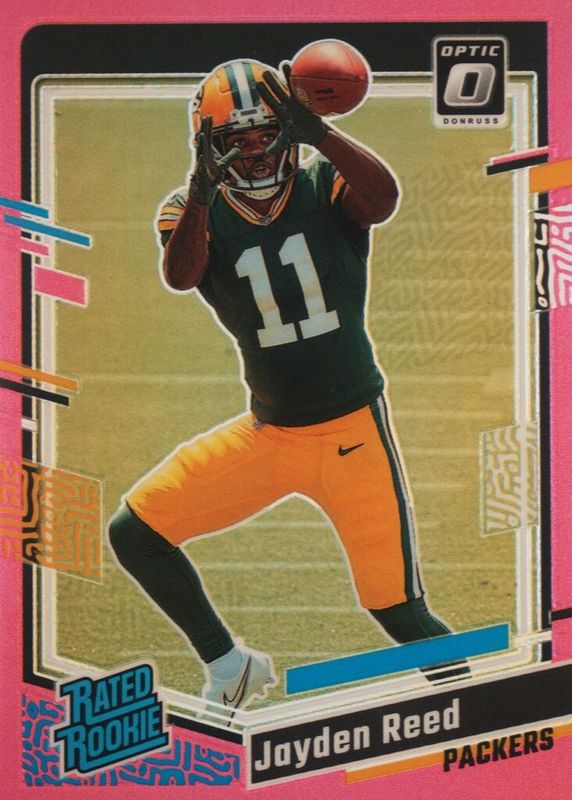 2023 PANINI DONRUSS OPTIC JAYDEN REED RC PINK PRIZM RATED ROOKIE #239 PACKERS