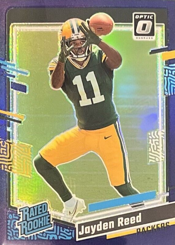 Jayden Reed 2023 Optic Rated Rookie Purple Holo 21/50 SP Packers #239
