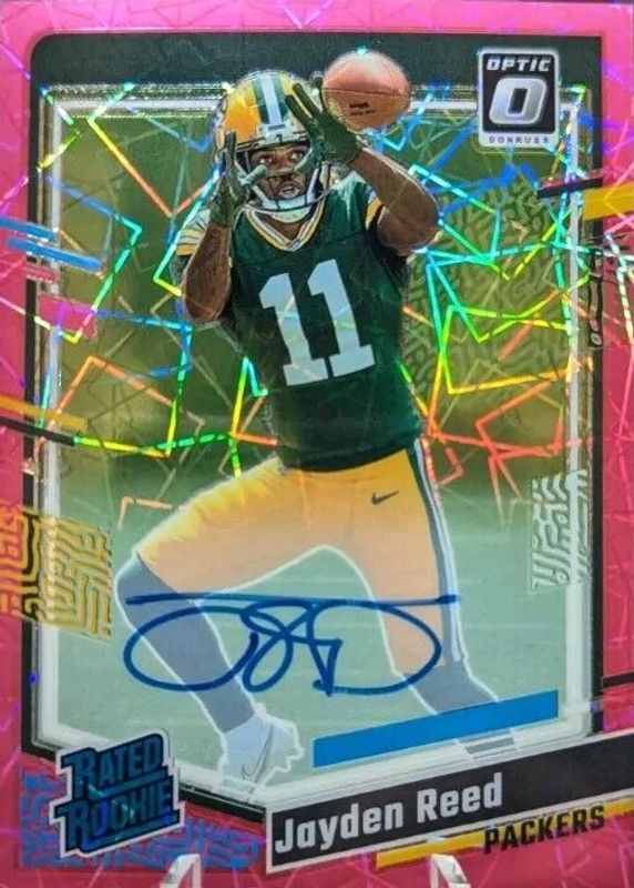 Jayden Reed 2023 Optic #239 Rated Rookie Autographs - Pink Velocity /50 RAW Price Guide