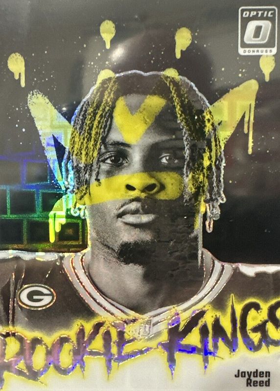 The Jayden Reed 2023 Optic #19 Rookie Kings - Black Pandora /25 card in Raw condition has not changed in price in the last 30 days and was last sold for $305.00 .