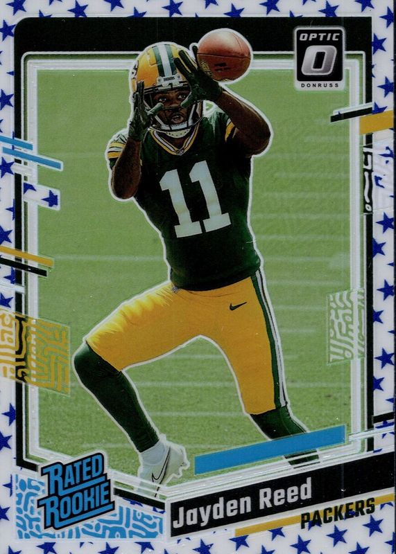 The Jayden Reed 2023 Optic #239 Stars /(SSP) Rookie card in Raw condition has not changed in price in the last 30 days and was last sold for $6.00 .