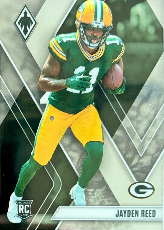 This card is 1 of 39 Jayden Reed's card variations in the 2023 Phoenix set being tracked by Sports Card Investor, including Color Burst, Silver, Silver Seismic, Fire Burst /340, and Red /250.
