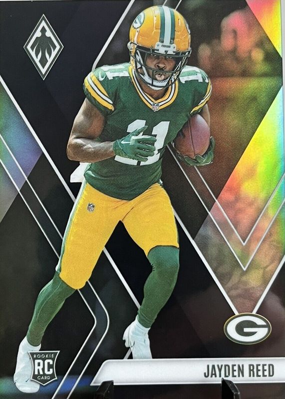 This card is 1 of 39 Jayden Reed's card variations in the 2023 Phoenix set being tracked by Sports Card Investor, including Base, Color Burst, Silver, Silver Seismic, and Fire Burst /340.