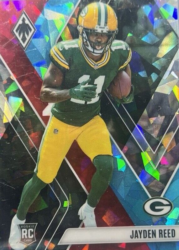 This card is 1 of 39 Jayden Reed's card variations in the 2023 Phoenix set being tracked by Sports Card Investor, including Base, Color Burst, Silver, Silver Seismic, and Fire Burst /340.