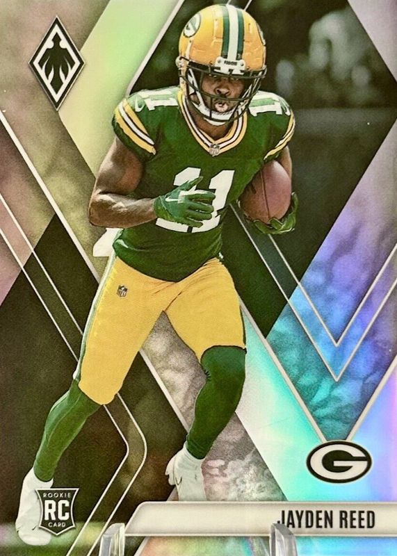 This card is 1 of 39 Jayden Reed's card variations in the 2023 Phoenix set being tracked by Sports Card Investor, including Base, Color Burst, Silver Seismic, Fire Burst /340, and Red /250.