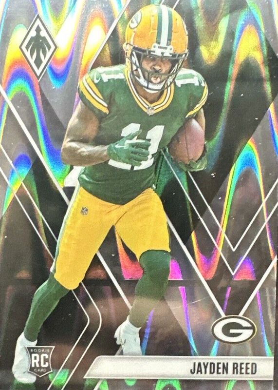 This card is 1 of 39 Jayden Reed's card variations in the 2023 Phoenix set being tracked by Sports Card Investor, including Base, Color Burst, Silver, Fire Burst /340, and Red /250.