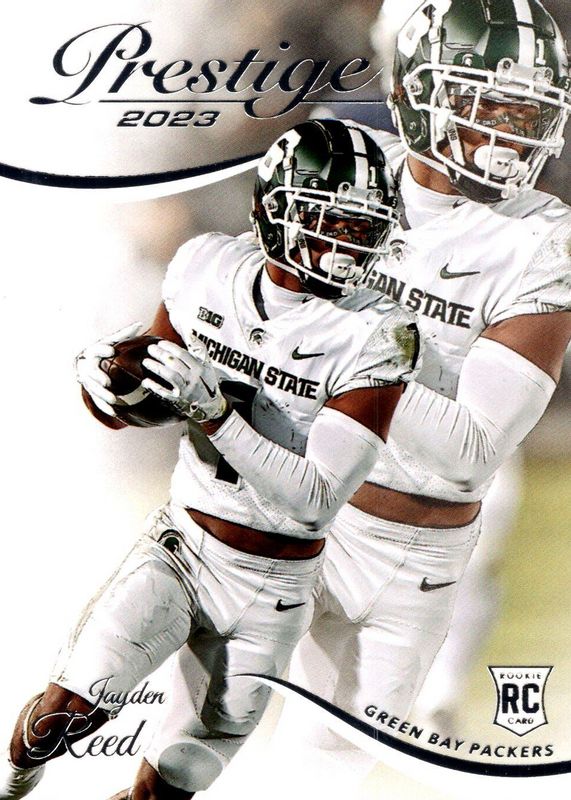 The Jayden Reed 2023 Prestige #348 Base Rookie card in Raw condition has not changed in price in the last 30 days and was last sold for $1.47 .