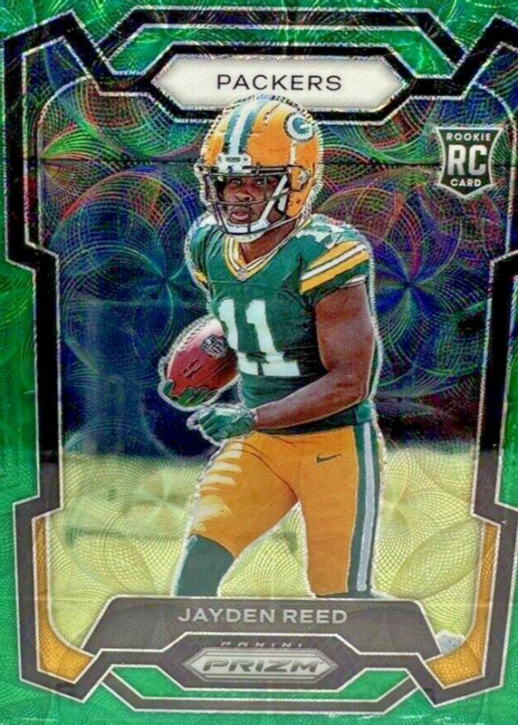 This card is 1 of 82 Jayden Reed's card variations in the 2023 Prizm set being tracked by Sports Card Investor, including Base, Disco, Green, Green Ice, and Green Wave.