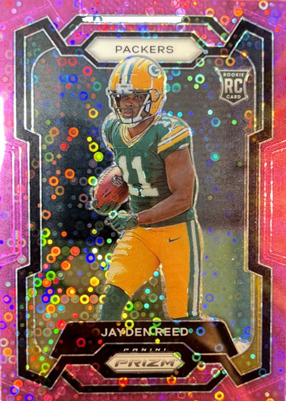This card is 1 of 82 Jayden Reed's card variations in the 2023 Prizm set being tracked by Sports Card Investor, including Base, Disco, Green, Green Ice, and Green Wave.