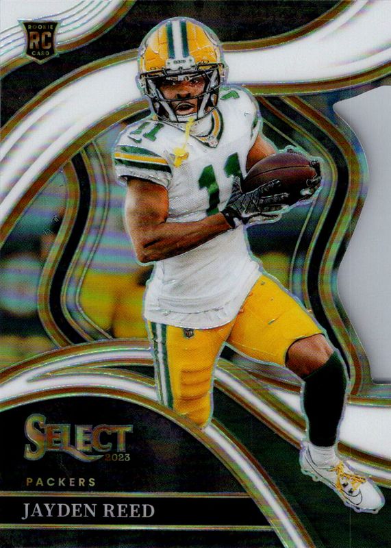This card is 1 of 119 Jayden Reed's card variations in the 2023 Select set being tracked by Sports Card Investor, including Club Level, Concourse, Suite Level, Club Level Black & Gold Die-Cut, and Club Level Black & Green Die-Cut.