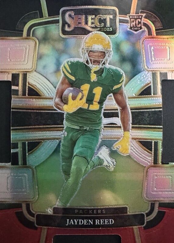 This card is 1 of 119 Jayden Reed's card variations in the 2023 Select set being tracked by Sports Card Investor, including Club Level, Concourse, Suite Level, Club Level Black & Gold Die-Cut, and Club Level Black & Green Die-Cut.