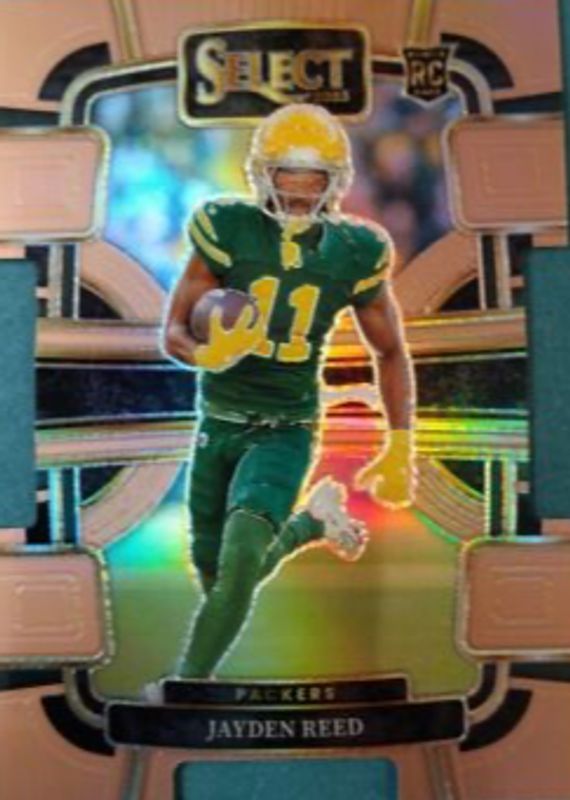 This card is 1 of 119 Jayden Reed's card variations in the 2023 Select set being tracked by Sports Card Investor, including Club Level, Concourse, Suite Level, Club Level Black & Gold Die-Cut, and Club Level Black & Green Die-Cut.