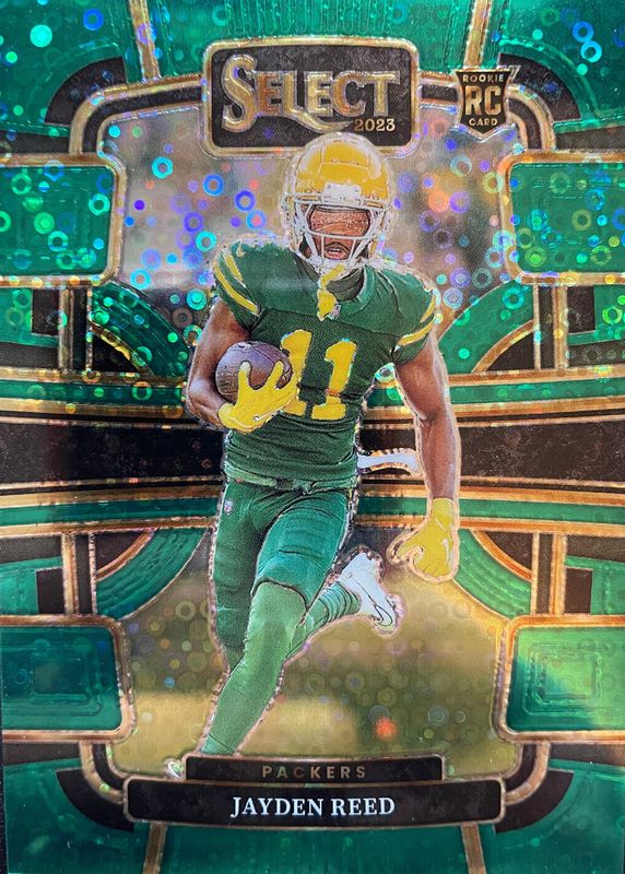 The Jayden Reed 2023 Select #38 Concourse Green Disco /5 Rookie card in Raw condition has not changed in price in the last 30 days and was last sold for $85.00 .