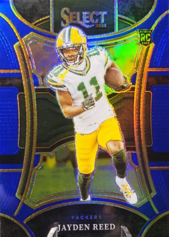 This card is 1 of 119 Jayden Reed's card variations in the 2023 Select set being tracked by Sports Card Investor, including Club Level, Concourse, Suite Level, Club Level Black & Gold Die-Cut, and Club Level Black & Green Die-Cut.