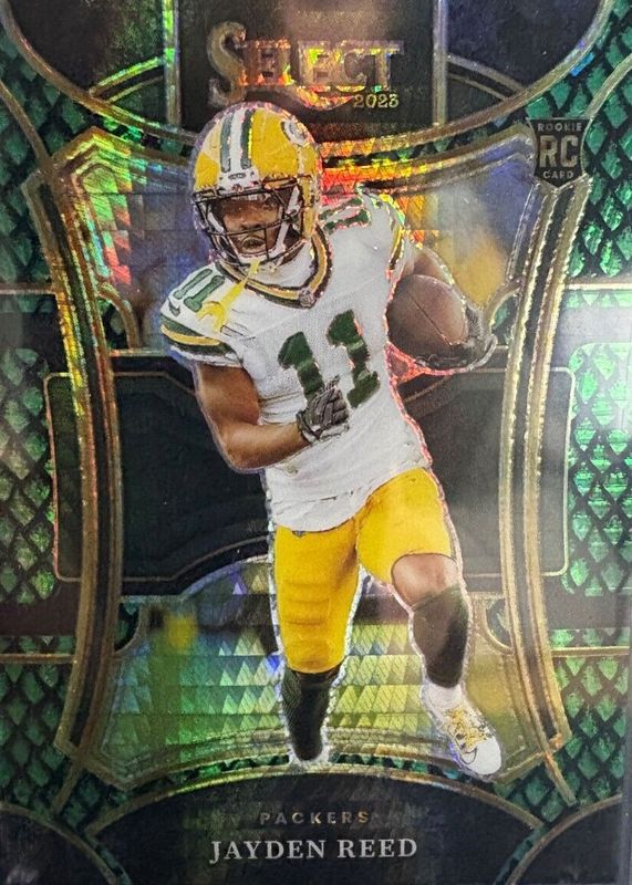 This card is 1 of 119 Jayden Reed's card variations in the 2023 Select set being tracked by Sports Card Investor, including Club Level, Concourse, Suite Level, Club Level Black & Gold Die-Cut, and Club Level Black & Green Die-Cut.