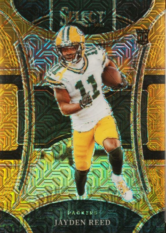 This card is 1 of 119 Jayden Reed's card variations in the 2023 Select set being tracked by Sports Card Investor, including Club Level, Concourse, Suite Level, Club Level Black & Gold Die-Cut, and Club Level Black & Green Die-Cut.
